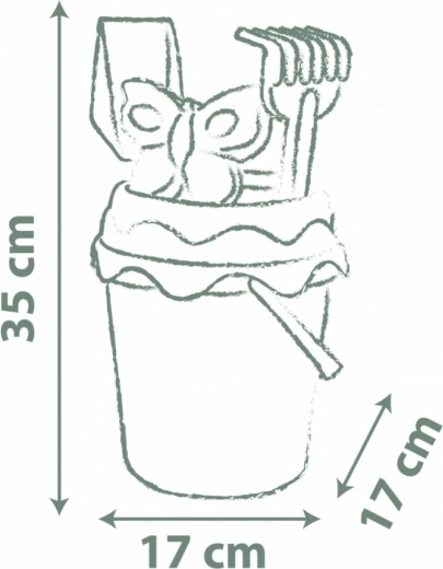 - Praktisk tilbehør: skovl, rive, praktisk vandkande og sandform sikrer, at du er klar til alskens lege og til at bygge sandslotte eller tunneller.
