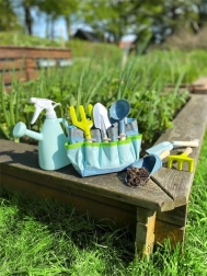 Den lette og transportable taske tilbyder rigelig plads, elastiske holdere til værktøjet og nem transport. Sættet er skræddersyet til børnehænder, så arbejdet i haven, ved højbedene eller i sandkassen føles naturligt og sjovt. De holdbare materialer klarer daglig brug og forskellige overflader.
