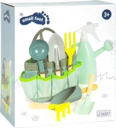Oplev glæden ved havearbejde med SMALL FOOT børnesættet i en praktisk tekstiltaske. Indeholder robuste metalredskaber med træhåndtag og en vandkande–forstøver til de første haveforsøg. Takket være de kompakte mål, sidelommer og elastiske holdere er alt sikkert opbevaret og altid ved hånden – ideelt til haven, sandkassen og stranden. Understøtter forholdet til naturen og udvikler finmotorikken. Holdbare materialer, transportabel taske, 8-delt sæt og design til børn fra 3 år.
