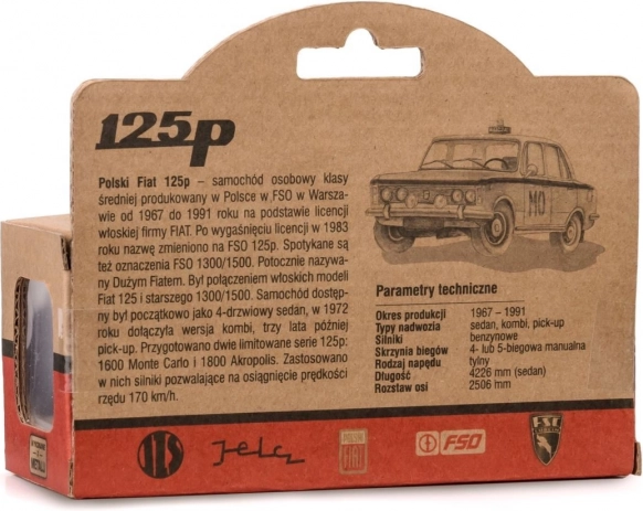 Samlermodel PRL Polski Fiat 125p MO 1:43. Kvalitets die-cast metal, detaljeret udførelse og historisk nøjagtighed. Perfekt gave til elskere af veterankøretøjer.