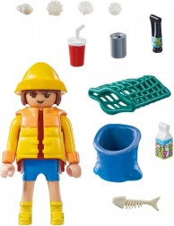 Denne PLAYMOBIL Special Plus-figur motiverer børn til ansvarlig adfærd over for planeten. Miljøforkæmperen går en tur på stranden og samler kasserede bægre, drikkekartoner og andet affald. Takket være aftageligt tilbehør og et rigt sæt af udstyr får børn timevis af kreativ leg og lærer samtidig, hvor vigtigt det er at sortere og rydde op i affald.