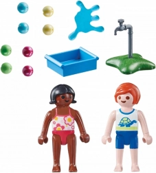 Sæt gang i sommerlegen med Playmobil Special Plus – Børn med vandballoner. Børnene fylder ballonerne med vand ved hanen og kan kaste sig ud i en forfriskende sprøjtedyst. Det kompakte sæt er ideelt som en lille gave, belønning eller supplement til andre PLAYMOBIL-universer.