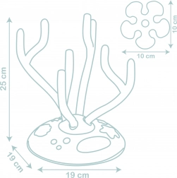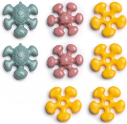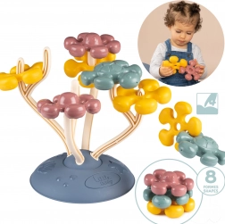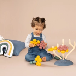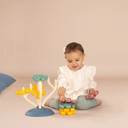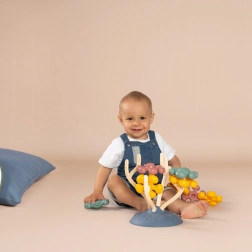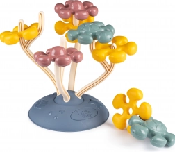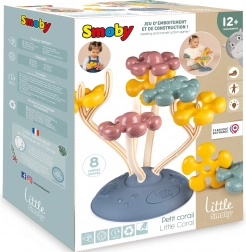 Little Smoby koralfarvede trælegetøj består af otte farverige plastdele, der minder om dekorative ottebenede og skildpaddeformede elementer. Børn kan nemt forbinde de enkelte dele og ændre deres placering på træets grene, hvilket fremmer kreativiteten.