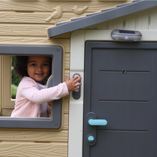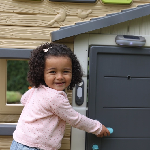 Dørklokken fastgøres nemt til moderne SMOBY-legehuse og er klar til brug på få øjeblikke.