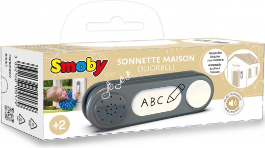 Gør legehuset komplet med en realistisk elektronisk dørklokke fra SMOBY i elegant grå. Den er nem at installere, passer til de fleste moderne SMOBY-legehuse og giver fantastisk interaktiv leg – børn kan byde venner velkommen og nyde en autentisk “ding-dong”. For endnu mere glæde kan klokken personliggøres med eget navn.
