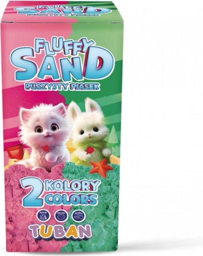 Oplev sanselig leg med TUBANs luftige sand i to farver. Det er let, drysser ikke og tørrer ikke ud, og så dufter det behageligt af tuggummi. Pakken indeholder 2× 70 g (i alt 140 g) sikkert, ikke‑giftigt sand fremstillet i Polen.