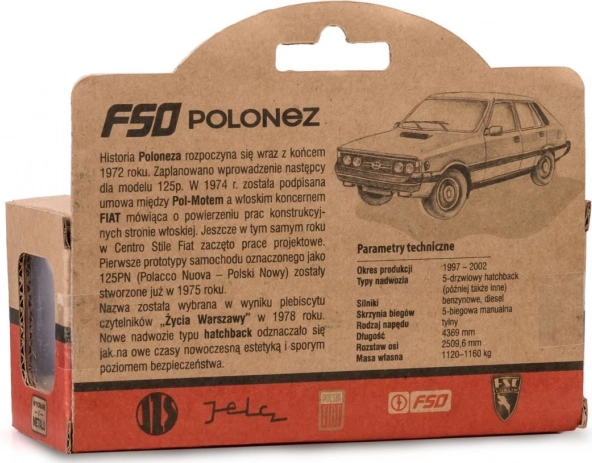 Den ikoniske polske bil FSO Polonez nu som samlermodel i skala 1:43. Metaludførelse die-cast med plastdetaljer, autentisk grøn farve og officiel FSO-licens vil glæde både samlere og børn. Modellen opfylder europæiske sikkerhedsstandarder og er egnet til børn fra 3 år.