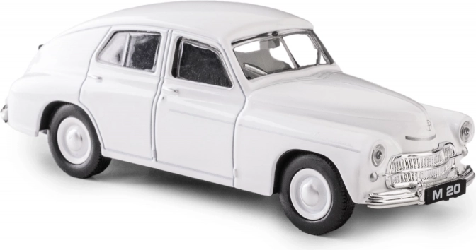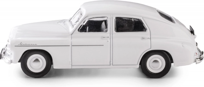 Oplev klassikeren i ren hvid: samlermodellen WARSZAWA M20, som trofast indfanger designet fra de første efterkrigs-sedaner. DIE-CAST metalkonstruktionen giver modellen tyngde og holdbarhed, mens fine plastdetaljer fremhæver det autentiske udtryk – fra kølergrillen til de formede kofangere.