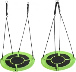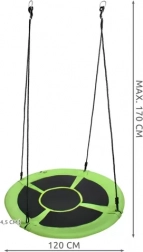 Robust nestgynge med en diameter på 100 cm og en bæreevne på op til 150 kg til både børn og voksne. Den har et bredt og behageligt sæde på en stålramme med EPE-skum, stærkt PP-net og slidstærkt Oxford 600D-stof. Højdejusterbare reb 10 mm med metalringe sikrer hurtig montering og sikker udendørs brug.