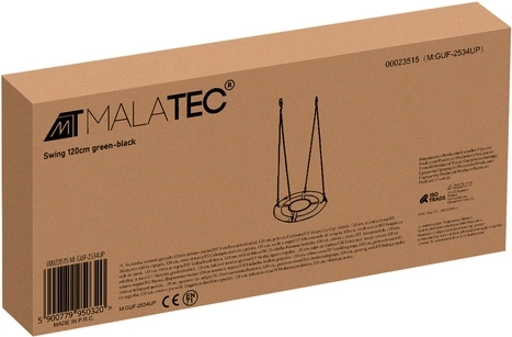 Monteringen er hurtig og nem – rebene er afsluttet med metalringe for sikker ophængning. Justerbar højde op til 170 cm gør det nemt at tilpasse gyngen til både mindre og større børn og letter sikker på- og afstigning. Bæreevne 150 kg og flettede reb på 10 mm giver et højt sikkerhedsniveau.