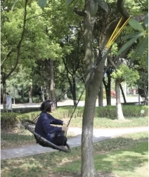 Installationen er hurtig og intuitiv – inkluderet er metaløjer i enderne af rebene for enkel ophængning. Justerbar reblængde op til 180 cm gør det muligt at tilpasse højden til forskellige brugere og steder. Med en bæreevne på 150 kg og robuste 10 mm reb er gyngen sikker for både børn og voksne.