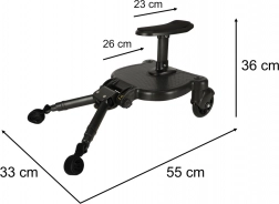 Nyd behagelige gåture med to børn takket være det universelle trin med sæde. Det ældre barn kan efter behov sidde eller stå, mens det yngre hviler i barnevognen. Den robuste udførelse og stabile hjul sikrer en jævn og sikker kørsel.