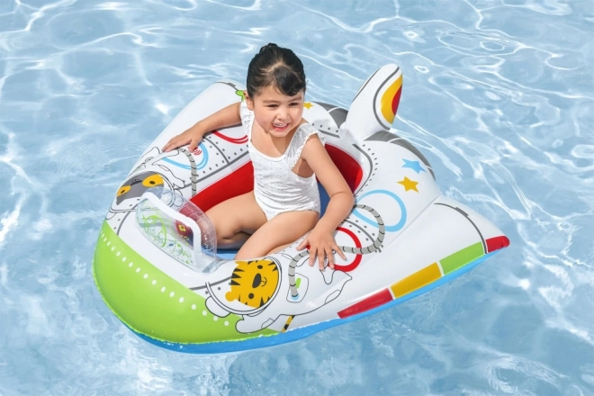 Gør dig klar til eventyr med oppustelig båd Bestway Funspeakers Rumskib, som imponerer med sit farverige design og sjove rumtema. Med dimensioner 1,04 m x 99 cm og en maksimal vægtkapacitet på 45 kg, er den ideel til mindre børn, der elsker at have det sjovt i vandet.