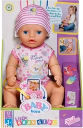 Den søde dukke BABY born Lena 36 cm er den ideelle første baby for de mindste fra 1 år. Den tilbyder 7 realistiske funktioner uden batterier – drikker fra flaske, tisser i bleen, bruger potte, kan bades, og takket være den magiske sut åbner og lukker den øjnene. Den lette krop og bevægelige lemmer gør det nemt at klæde på og lege omsorgslege.