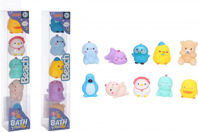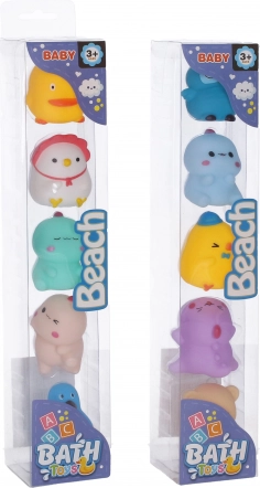Gør badet sjovere med dette sæt med fem søde badedyr. Hvert dyr er 5 cm stort og fås i to varianter.