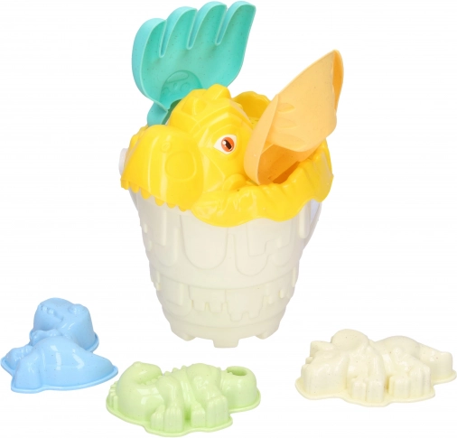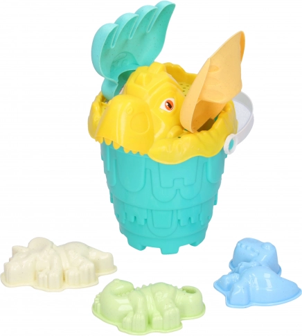Det sjove sandsæt Dino til små bygmestre indeholder alt, hvad der er nødvendigt til leg på stranden og på legepladsen. I sættet finder du en spand, et låg med si, 3 dinosaurforme, en rive og en skovl. Ideelt til at udvikle kreativitet, finmotorik og fælles leg.