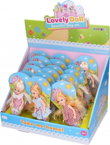 Mini-dukke 12 cm i flere varianter. Kompakt størrelse, fantastisk gave til børn og samlere. Pakket i displayboks med 18 stk.