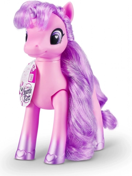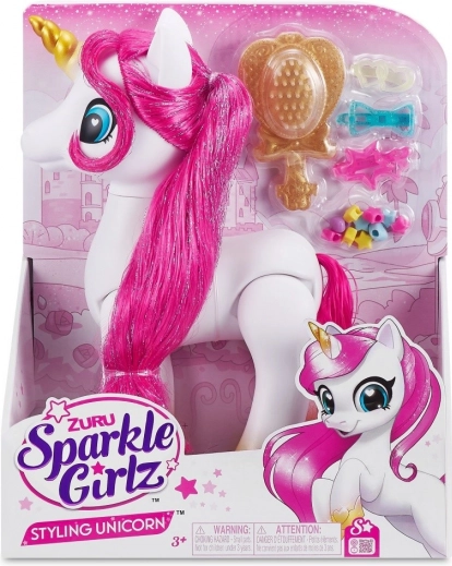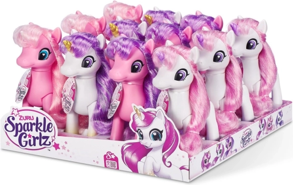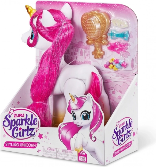 Styling-enhjørningen ZURU Sparkle Girlz bringer børn ind i en verden af fantasi og glimmer. Takket være den lange tekstilmanke kan børn børste, pynte og skabe nye frisurer, mens det glitrende horn og de skinnende hove giver hver leg et magisk præg.