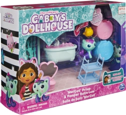 Åbn pakken og træd ind i et magisk badeværelsesmiljø, som børn kender fra serien Gabby’s Kattehus. Indeni finder du en samlerfigur af Havfrue-katten, detaljerede møbler og tilbehør til kreativ leg: en badeand, duft/parfume, et håndklæde og en agurkemaske, som figuren faktisk kan bære.