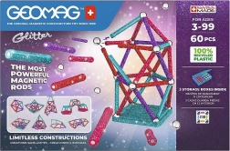 Det glitrende Geomag Glitter-byggesæt giver uendelige byggemuligheder takket være stærke magneter og farverige stave med glimmereffekt. Børn øver fysik, geometri og rumlig perception gennem leg, mens de skaber originale modeller fra simple former til mere avancerede konstruktioner. Materialet af 100% genbrugsplast er robust og skånsomt mod naturen.