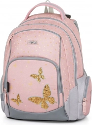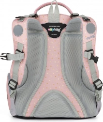 Skolerygsækken OXY GO i et blødt design med sommerfuglemotiv imponerer ikke kun med sit udseende, men også med gennemtænkt ergonomi. Takket være åndbar ryg og justerbare skulderstropper giver den komfort hele dagen og understøtter korrekt kropsholdning. Den lave vægt på 0,99 kg og reflekselementer øger sikkerheden på vej til skole.