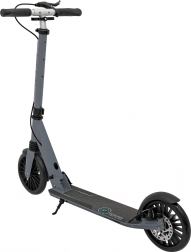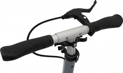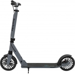 Den lette by-sparkcykel SporTrike i sølv tilbyder en aluminiumsramme, to bremser (håndbetjent skivebremse og fodbremse), justerbart styr 85–99 cm og gummihjul 190 mm for en behagelig og sikker tur til både arbejde og fritid.