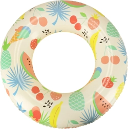 Det legende print med bananer, vandmeloner og andre motiver giver ekstra sjov i vandet, og børn bruger ringen med glæde.