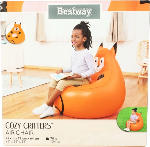 Den oppustelige BESTWAY-lænestol med rævemotiv forvandler enhver børnehjørne til et legende og komfortabelt sted til afslapning, læsning og leg. Den bløde, oppustelige konstruktion giver behagelig støtte og er samtidig let og nem at flytte.