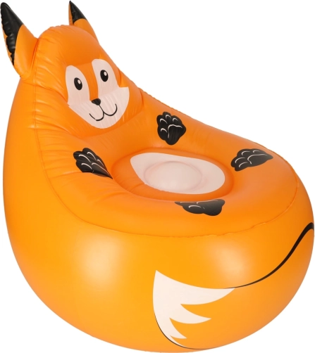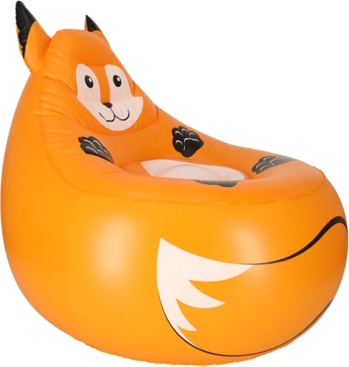 Sød oppustelig børnelænestol BESTWAY i rævedesign. Komfortabel, holdbar PVC, bæreevne 70 kg, nem opbevaring. Til værelset og haven.
