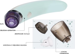 Med en femtrins sugeeffekt kan enheden tilpasses slimets viskositet. Leveres med to silikoneender, der ikke irriterer næseslimhinden, og kan skiftes afhængigt af barnets alder. Den stille drift af enheden er særligt effektiv om natten, når du ikke ønsker at forstyrre barnets rolige søvn.
