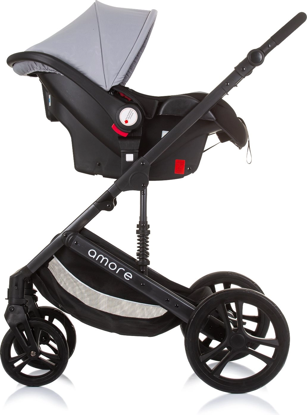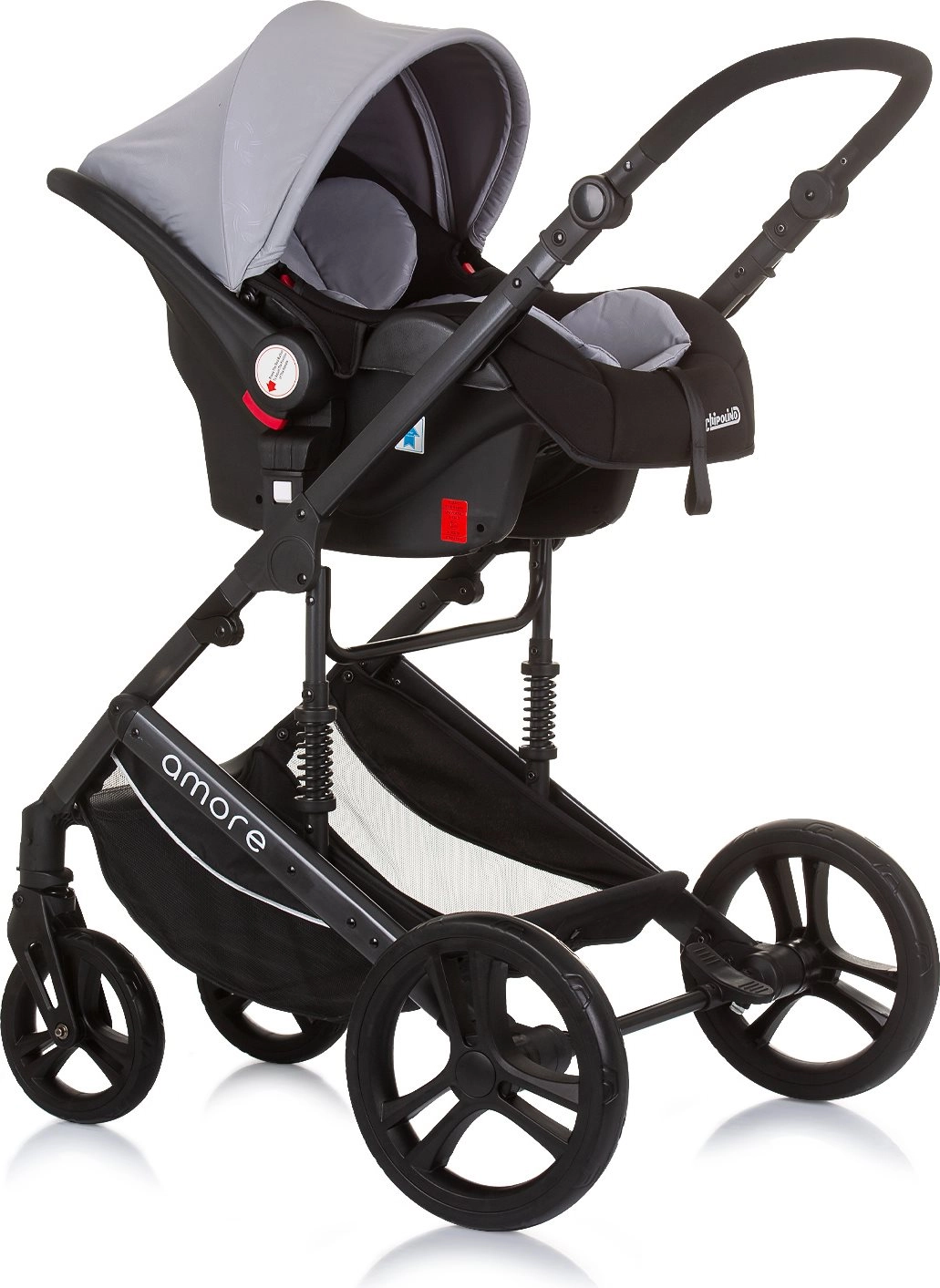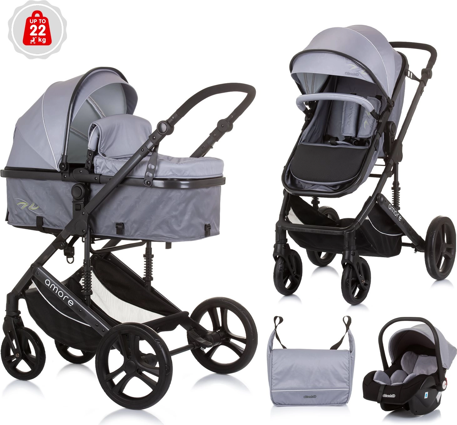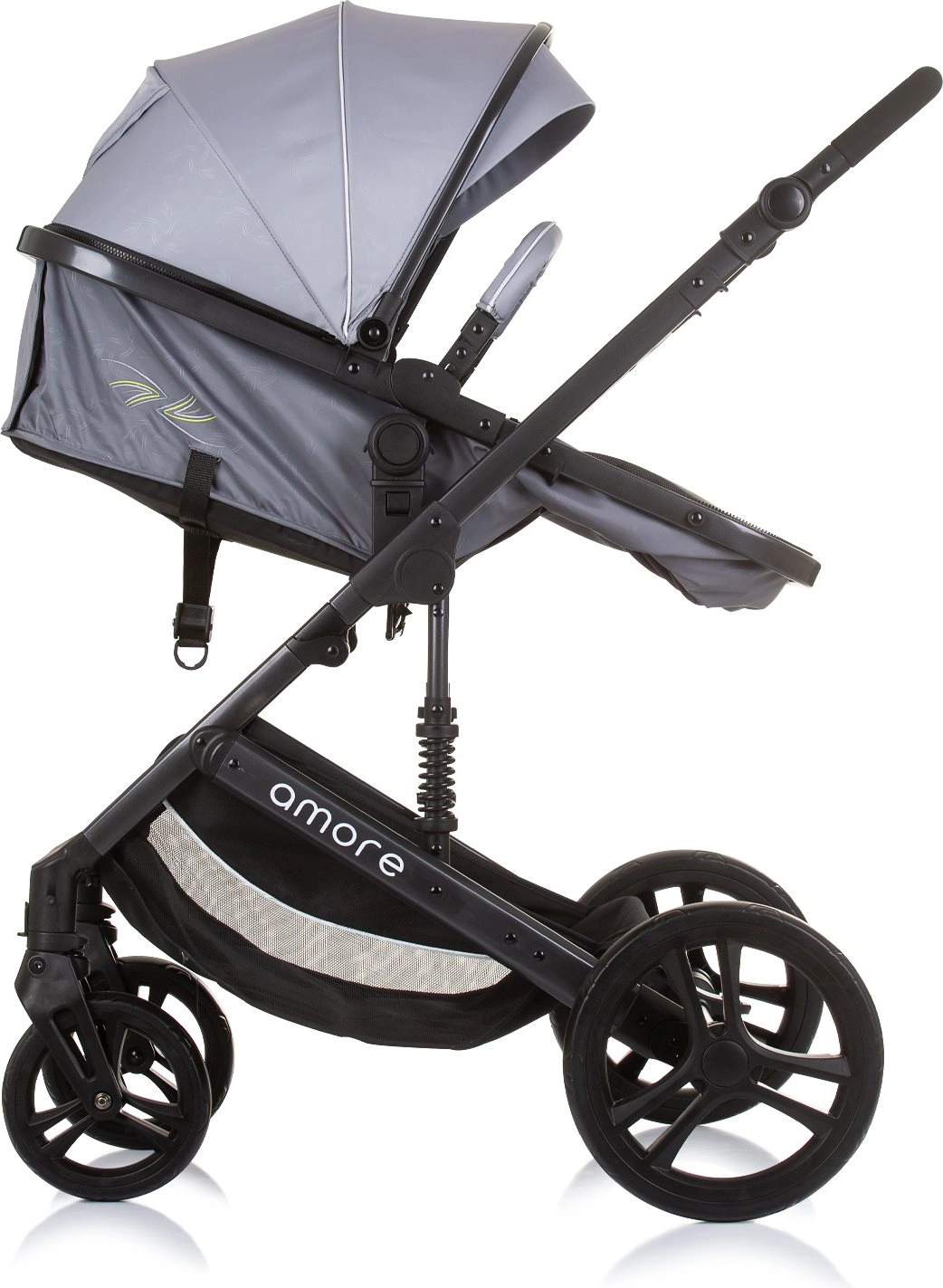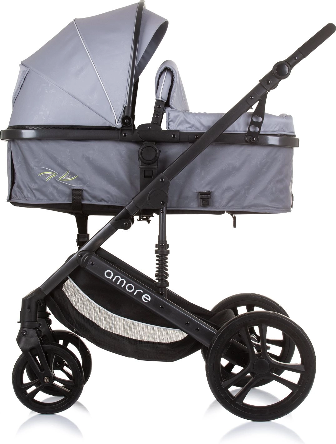 Den alsidige Amore 2-i-1 barnevogn kombinerer lift og klapvogn i én løsning til daglige gåture og længere udflugter. Med affjedret stel, store aftagelige hjul og højdejusterbart styr giver den komfort for både barn og forældre. Sædet kan indstilles i 3 positioner og vendes både med og mod kørselsretningen.