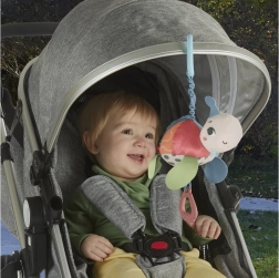Legetøjet bruger tekstiler fremstillet af 80 % genanvendt plast og leveres i emballage med FSC-certificering. Toy link med certificerede plasttyper (ISCC, massebalance-metode) gør det let at fastgøre sikkert på barnevogn, taske eller aktivitetsstativ – perfekt til sjov på farten.