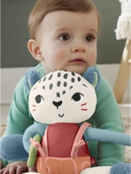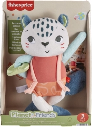 Plys-panteren FISHER-PRICE Planet Friends er designet til skånsom sansestimulering af de mindste. Kontrastmønstre tiltrækker opmærksomhed, bløde teksturer og ører opfordrer til taktil udforskning, og knitrende “sko” inviterer til at klemme og lytte. Lange ben, stropper og en glidering motiverer barnet til at gribe, trække og træne finmotorikken.