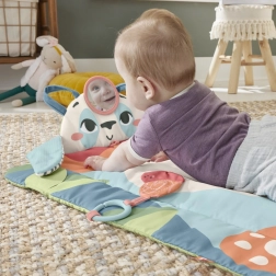 Legeunderlaget FISHER-PRICE Planet Friends Panda 3-i-1 forener leg, udvikling og bæredygtighed. Det højkontrastpanel til mavetid hjælper med at udvikle syn og koordination, mens den bløde polstring giver babyen komfort i den daglige udforskning.