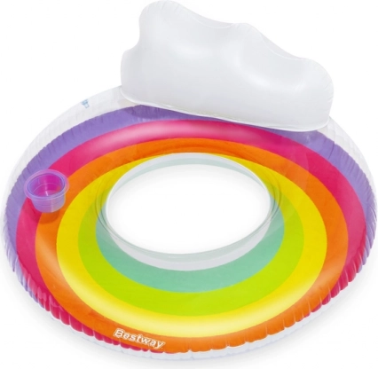Den stilfulde regnbue-ring fra BESTWAY er ideel til pool, sø og strand. Takket være den integrerede rygstøtte med behagelig hovedpude får du ægte afslapning på vandoverfladen, mens den praktiske kopholder holder din drik lige ved hånden.