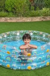 Forkæl børnene med sommerlig afkøling i den farverige oppustelige pool med frugtmotiv fra Bestway. Med målene 150 × 53 cm er den ideel til haven, den er let at puste op og tømme, har 3 ringe for bedre stabilitet og en blød bund for behagelig leg. Et godt valg til børn fra cirka 6 år.