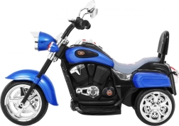 Den stilfulde elektriske børnetrehjuler Chopper NightBike glæder små kørere med et realistisk look, en stabil trehjulet konstruktion og nem betjening frem/tilbage. Den tilbyder LED-forlygte, lydpanel med melodier og AUX-indgang til yndlingsmusik. Den kraftige 6 V motor med 6 V/4,5 Ah batteri sikrer sjov kørsel, de brede hjul giver stabilitet og sikkerhed, og det komfortable sæde er perfekt til daglige ture.
