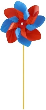 Vindhjulet er lavet af farverig plast, hvis klare farver fanger opmærksomheden hos alle forbipasserende.