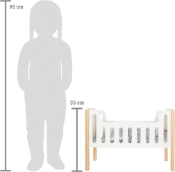 Denne moderne dukkevugge, designet i skandinavisk, lineært design, er det perfekte valg til at putte dukker eller plysdyr. Højkvalitets forarbejdning omfatter afrundede kanter og solide træelementer for øget holdbarhed og sikkerhed. Der medfølger vendbart sengetøj med en stor dyne, som sikrer en behagelig søvn også for større dukker. Den forhøjede liggeflade giver en ergonomisk legeoplevelse.