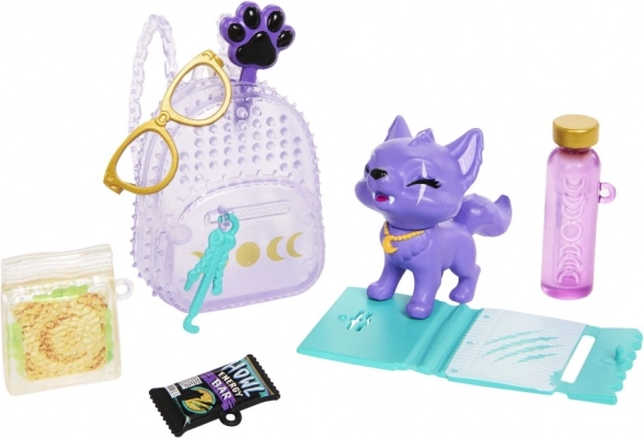 Outfittet med “klø”-attitude består af en lilla pelsjakke, bukser med leopardmønster, suppleret med halskæde, bælte og platformsko. Det rige tilbehørssæt – rygsæk, briller, drikkeflaske, snack og bar, organizer og børste til kæledyret – understøtter imaginativ leg og udstilling på hylden.