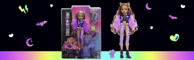 Clawdeen Wolf stråler i en pelsjakke og bukser med leopardmønster, der understreger hendes selvsikre stil.