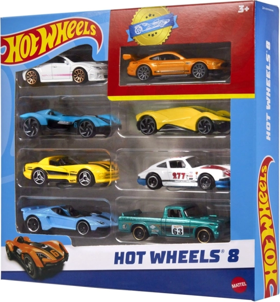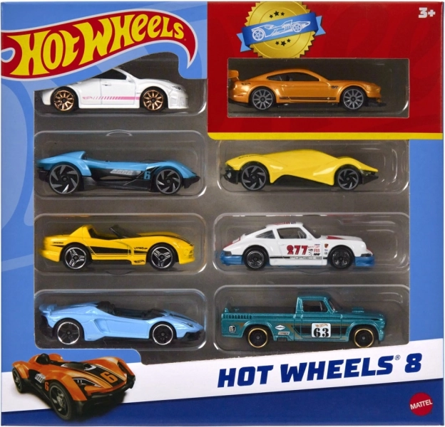 Sæt med 8 HOT WHEELS-biler er det perfekte startkit eller en udvidelse af samlingen. Biler i skala 1:64 imponerer med realistisk stil, kraftige farver og høj kvalitet for langvarig leg. I hver pakke finder du én eksklusiv model, som du ikke kan købe andre steder.