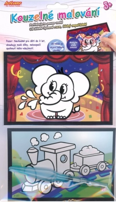 Magisk maling med vand underholder selv de mindste kunstnere. Det eneste, der behøves, er vand, og takket være det specielle hvide lag på billederne, som forsvinder, når det bliver fugtigt, kan du skabe magiske farverige motiver. Når billedet tørrer, dækkes det igen af et hvidt lag, hvilket gør det muligt at male på ny igen og igen.