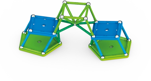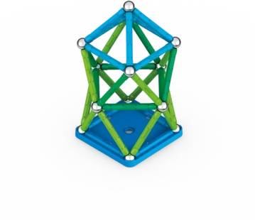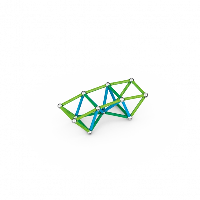 Sættet indeholder magnetiske stave og kugler, der sikrer holdbarhed og stabilitet i hver konstruktion. Indeholder to særlige firkantede og to femkantede baser.
