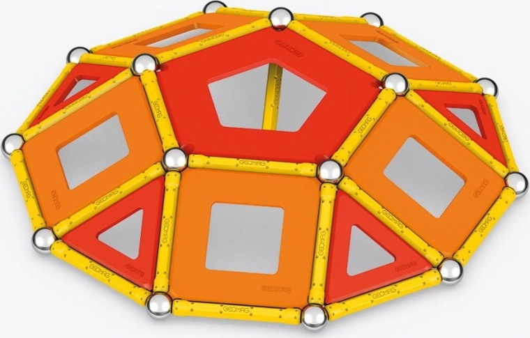 Geomag giver dig mulighed for at skabe utallige konstruktioner af farvede paneler og magnetiske stænger.