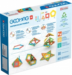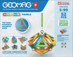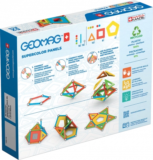 Med Geomag-stave og -kugler kan du nemt skabe originale og stabile 3D-konstruktioner. Trekantede, firkantede og femkantede paneler forstærker og pynter modellerne, mens klare farver stimulerer fantasien. Delene er fremstillet af 100% genanvendt plast – de er holdbare og samtidig skånsomme mod naturen.