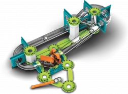Byg din egen racerbane, lad kuglen op, og se, hvordan magnetkanonen skyder den af sted på banen. Takket være tyngdekraftsdrevet og roterende dele udløses imponerende kædereaktioner, som på en enkel måde viser børn fysikkens love.