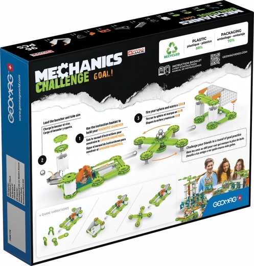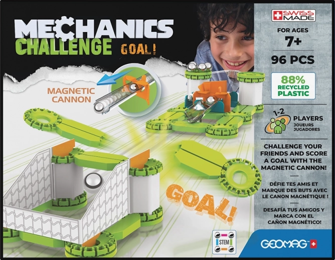 Byggesættet GEOMAG Mechanics Challenge kombinerer magnetiske stave, metal kugler og mekaniske elementer, der udvider mulighederne i enhver konstruktion. Takket være tiltrækning og frastødning fra magneter skaber du nemt bevægelige mekanismer og kædereaktioner. Byg en magnetkanon, sigt og skyd kuglen i målet – en super udfordring for både én og to spillere.