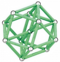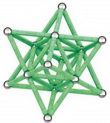 - 44 lysende magnetiske stænger, 44 stålkugler, 2 stabile firkantede baser, 2 stabile femkantede baser