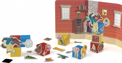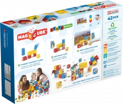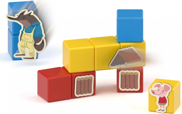 Sættet indeholder 10 solide magnetiske klodser og 31 illustrerede klips med motiver af grise, ulv og husbyggeri, så de små skabere kan genfortælle den kendte historie eller finde på nye. Materialerne er sundhedsmæssigt ufarlige og fremstillet med Geomags typiske schweiziske præcision.